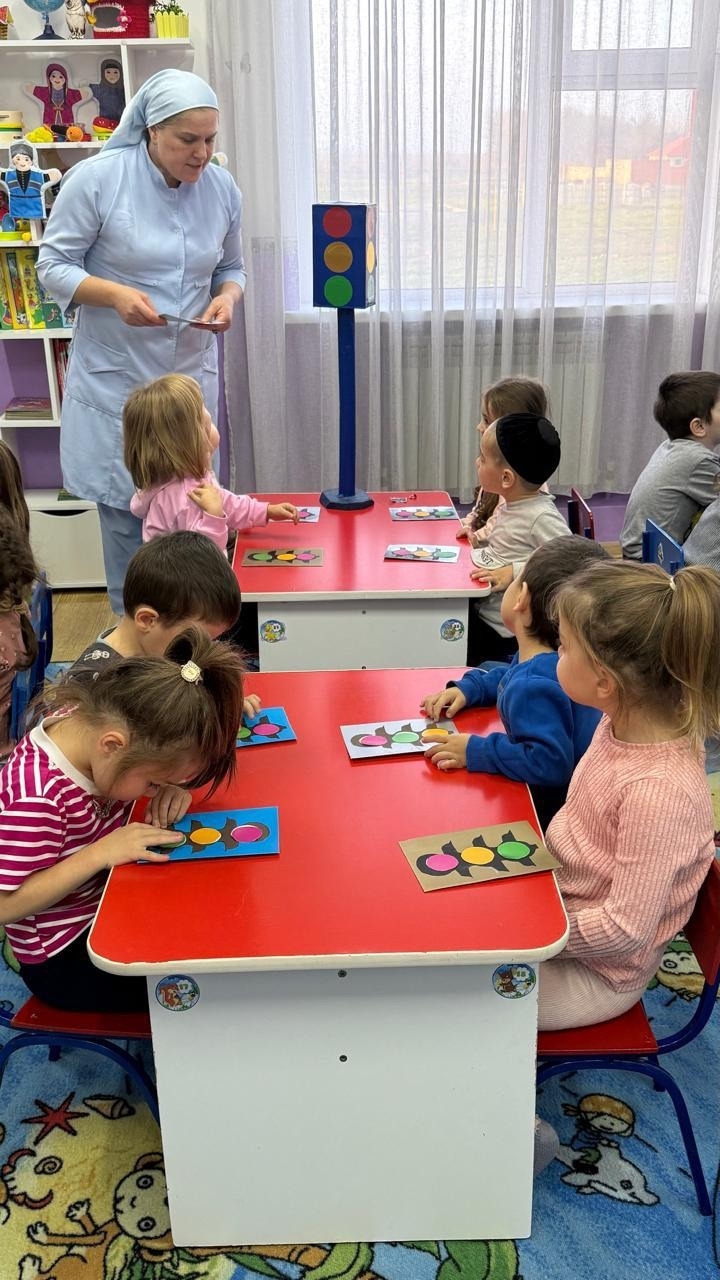 Воспитатель провела дидактическую игру: "Разложи по фигуре" Цель: закрепить знания о форме и цвете, научить работать со схемами, формировать зрительно-моторную координацию и учить детей группировать предметы.