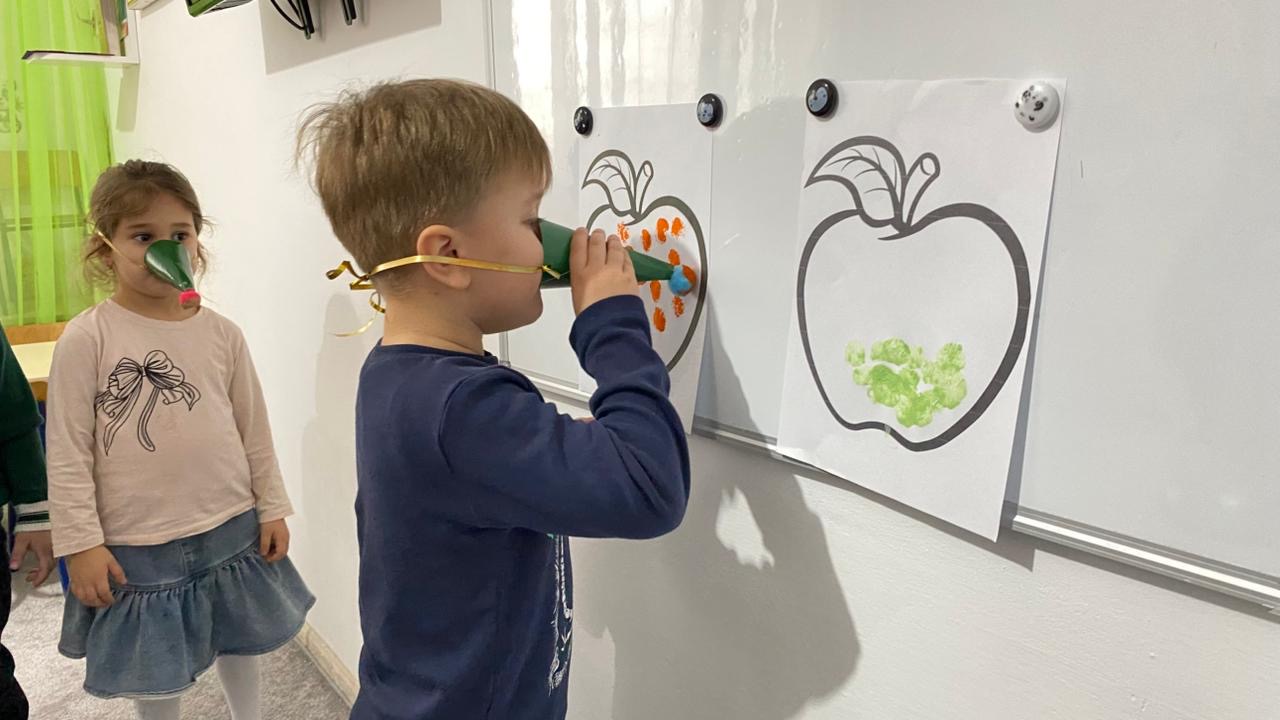 Воспитатель средней группы провела нетрадиционное рисование с детьми, "Помпон-наша волшебная кисточка".