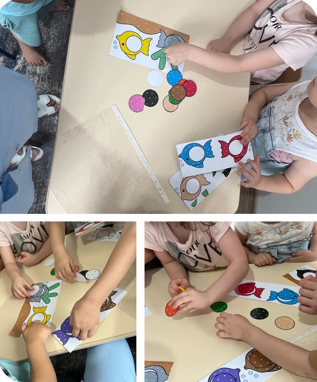 Цель игры: формирование умение группировать предметы по цвету, различать цвета, находить "такой же", использовать название цветов в речи.
