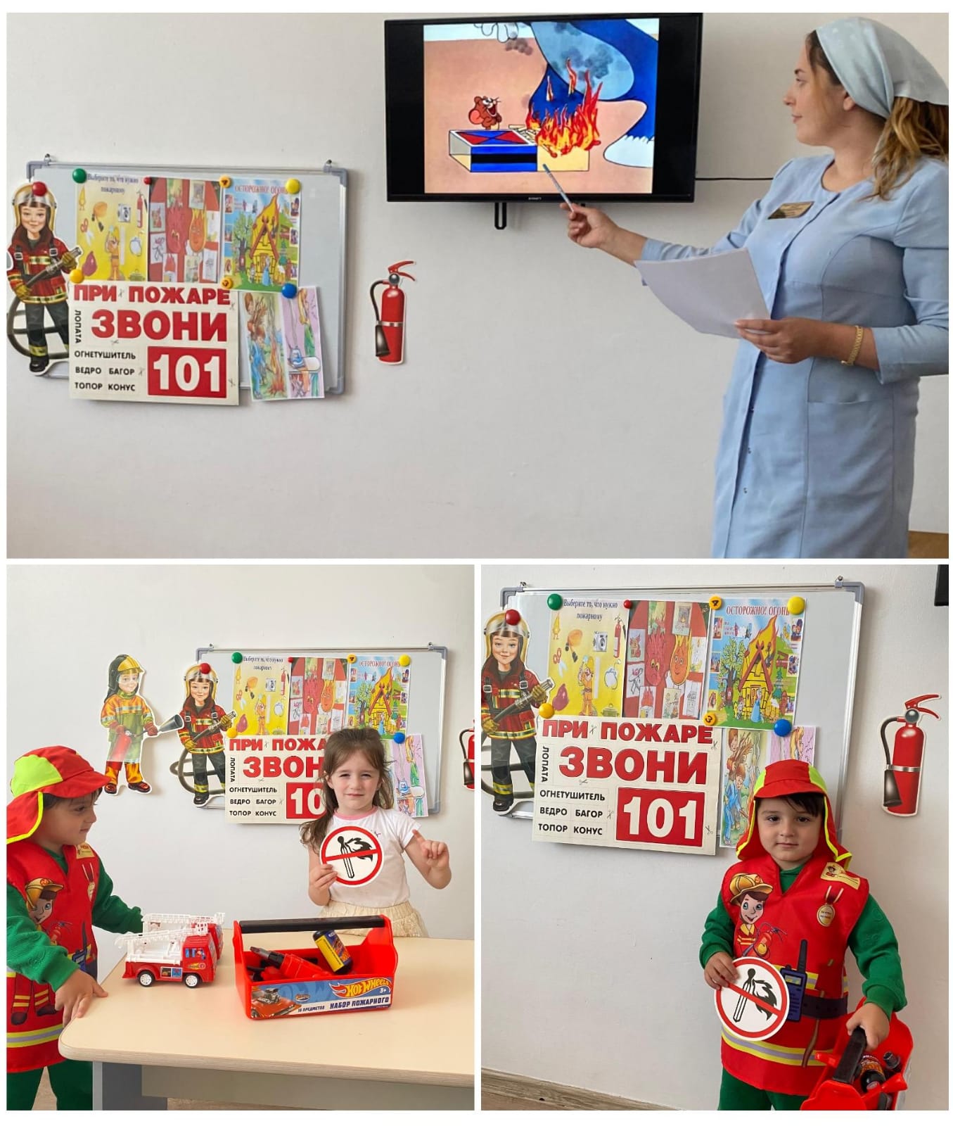 Воспитатель в младшей группе "Нур" с детьми провела беседу по ППБ на тему: "Чтобы не случился пожар". Цель: познакомить детей с правилами поведения в природе.