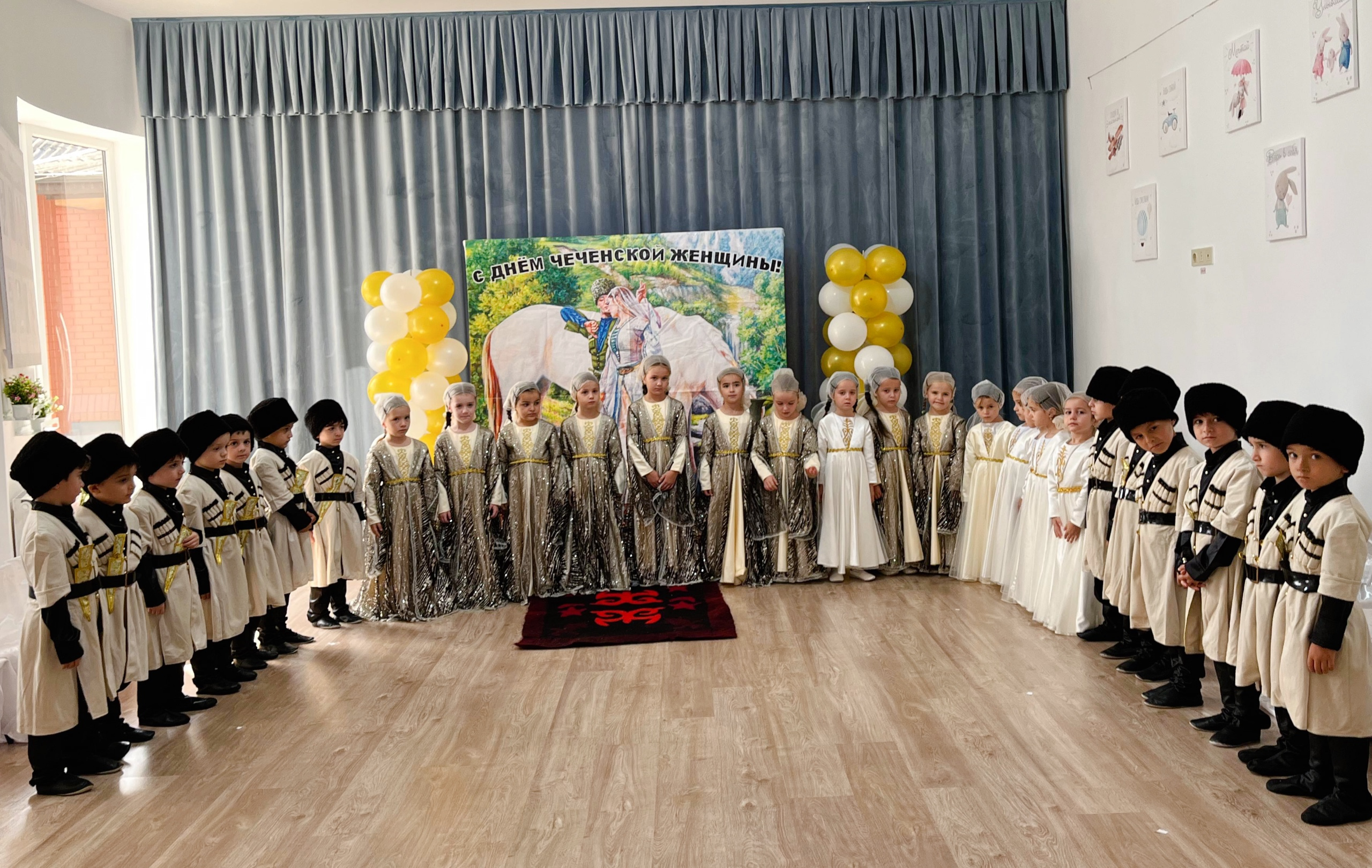 Началось мероприятие со вступительного слова Зары Умар-Пашаевны. Она провела краткий экскурс в историю праздника. Дети исполнили песню «Зама хьо, сих мало». Также дети прочитали стихи, посвященные чеченской женщине. Настоящим украшением праздника стала художественная самодеятельность детей – девочки исполнили танец в честь Дня чеченской женщины.